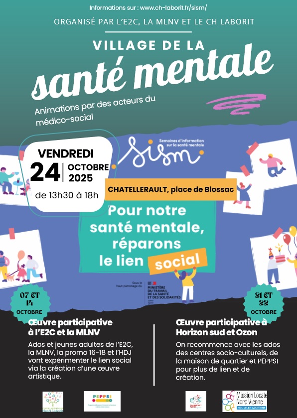 Inauguration d’une œuvre participative sous la forme d’une fresque avec les ados et les jeunes adultes de la Mission Locale d'Insertion, la Mission Locale Nord Vienne, les usagers de l’hôpital de jour, l’E2C (Le Réseau des Écoles de la 2ᵉ Chance), la promo 16-18, le Secteur Jeunes Maison de Quartiers et des Centres Socio-culturels et de PEPPSI (Programme d’Évaluation Précoce de la Psychose et Séries d’Interventions) pour plus de liens et de créations !
