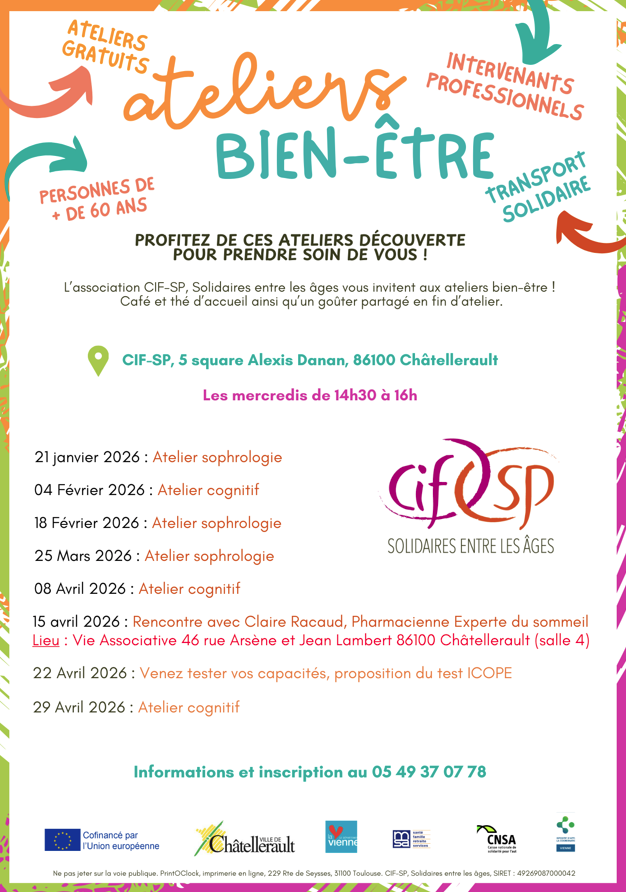 L'association CIF-SP, Solidaires entre les âges propose de nombreuses activités et évènements sur tout le département de la Vienne durant toute l'année.