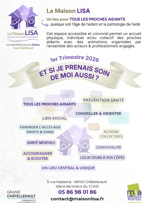 La Maison LISA est née d’une collaboration entre une vingtaine d’acteurs locaux (élus, professionnels, associations, proches aidants…) et d’un co-portage entre l’association MSA Services Poitou et la Communauté d'Agglomération de Grand Châtellerault.